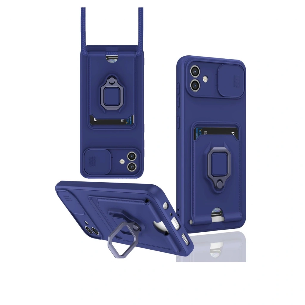 Samsung Galaxy A05 Kılıf Zuma Kartvizitli Yüzüklü Silikon - Lacivert