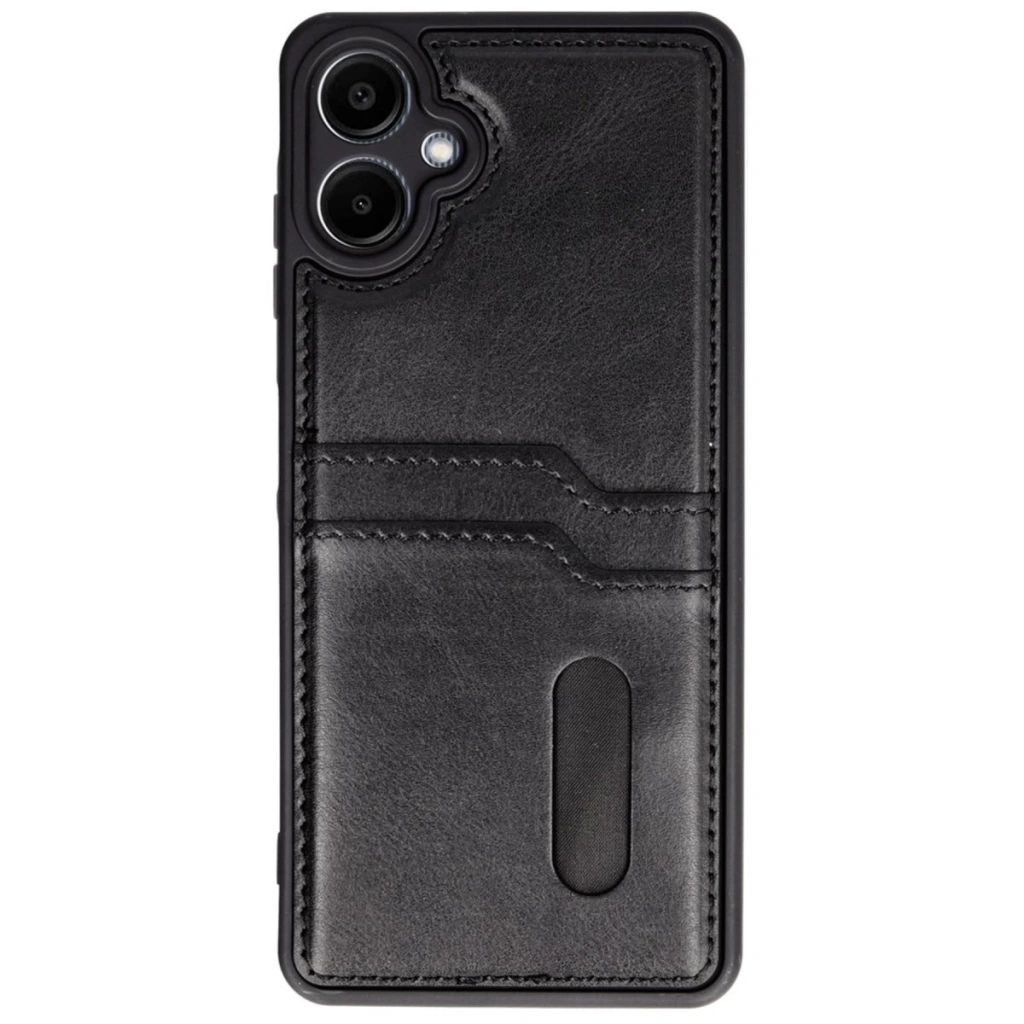 Samsung Galaxy A06 Kılıf Sara Kartvizitli Deri Kılıf - Siyah