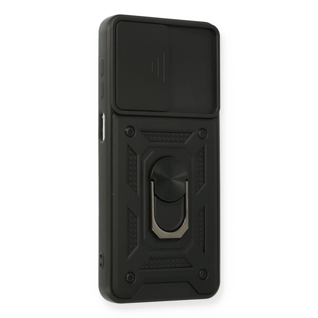 Samsung Galaxy A12 Kılıf Pars Lens Yüzüklü Silikon - Siyah