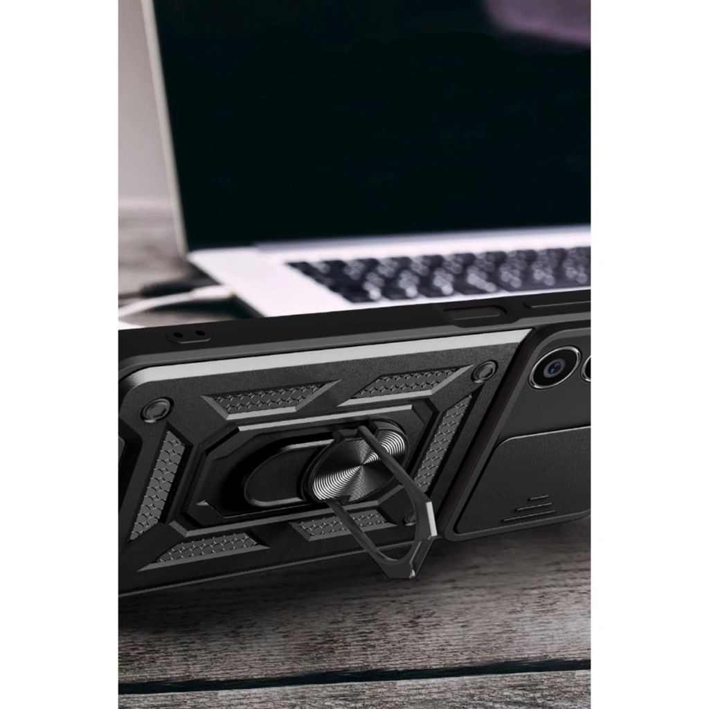 Kılıfın arka kısmında yer alan entegre metal halka hem tutucu hem de stand olarak işlev görür. Eller serbest video izleme, içerik görüntüleme ya da masaüstü kullanımı için idealdir.