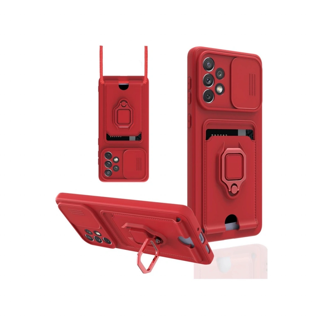 Samsung Galaxy A33 5g Kılıf Zuma Kartvizitli Yüzüklü Silikon - Kırmızı
