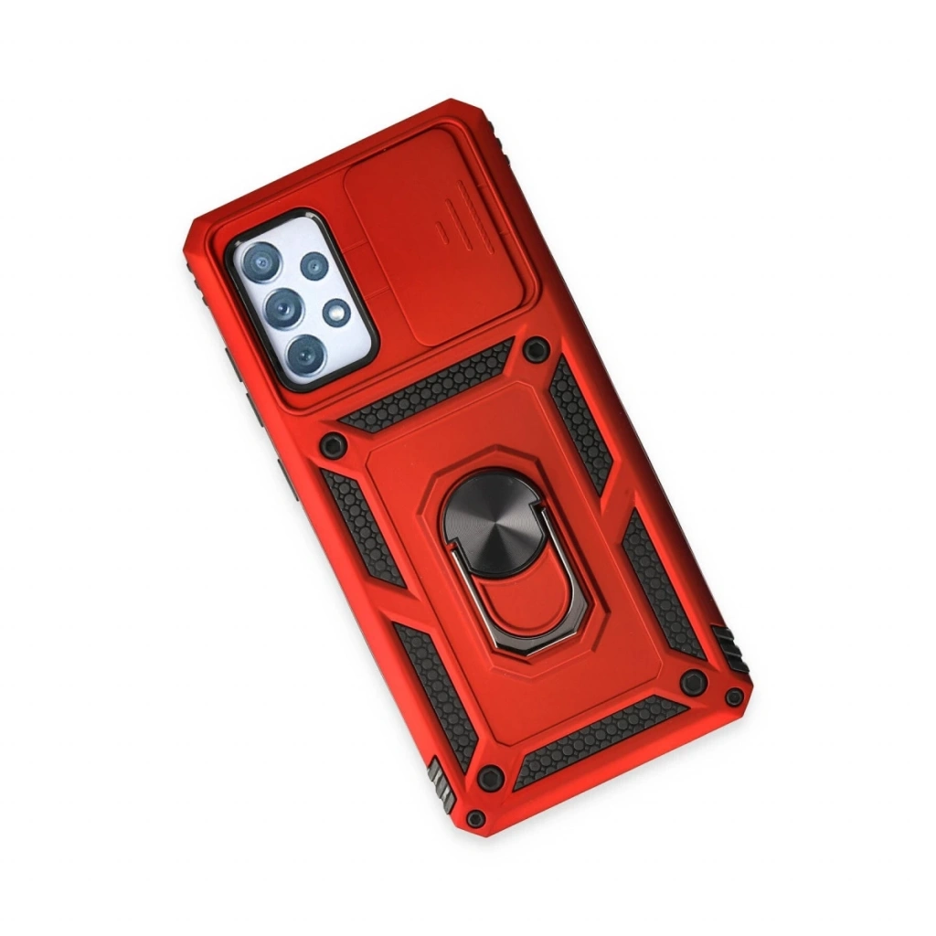 Samsung Galaxy A52 Kılıf Pars Lens Yüzüklü Silikon - Kırmızı