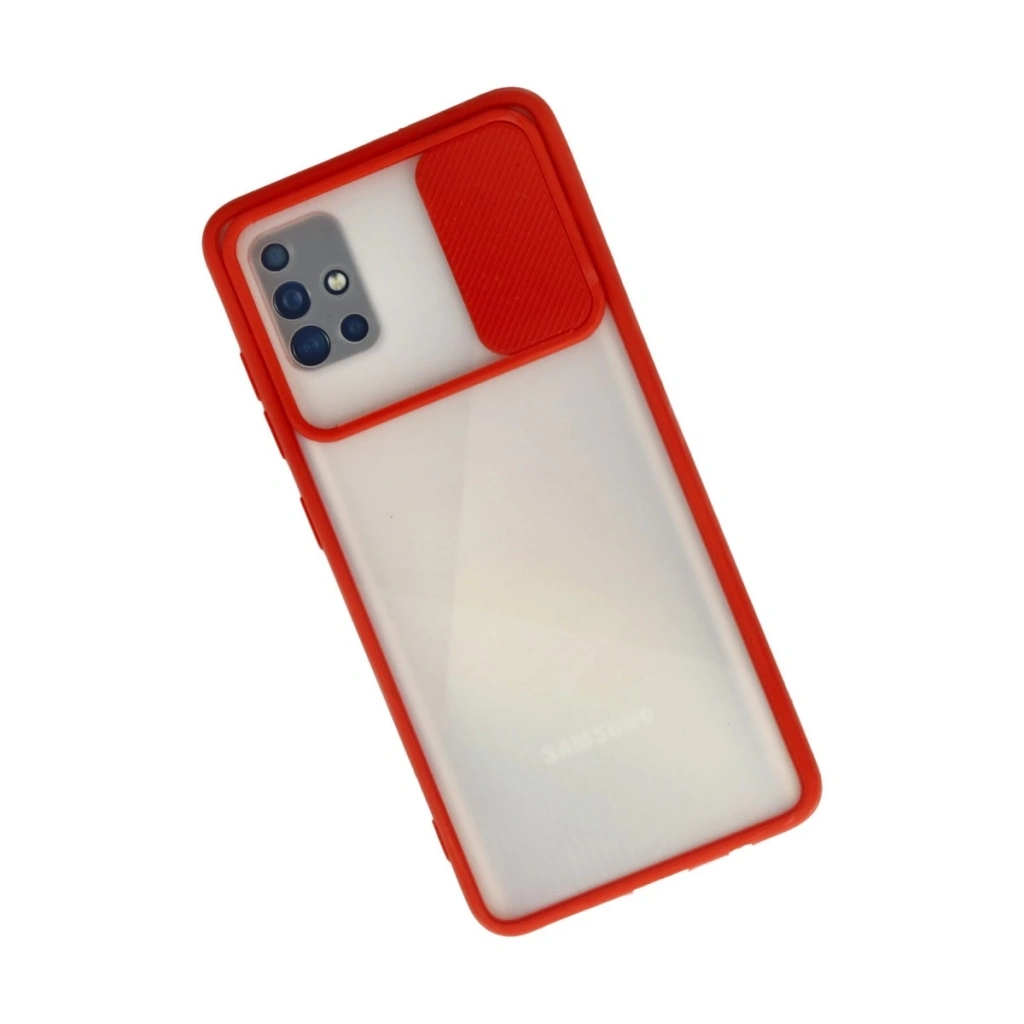 Samsung Galaxy A71 Kılıf Palm Buzlu Kamera Sürgülü Silikon - Kırmızı