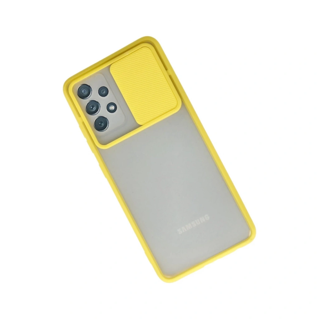 Samsung Galaxy A72 Kılıf Palm Buzlu Kamera Sürgülü Silikon - Sarı