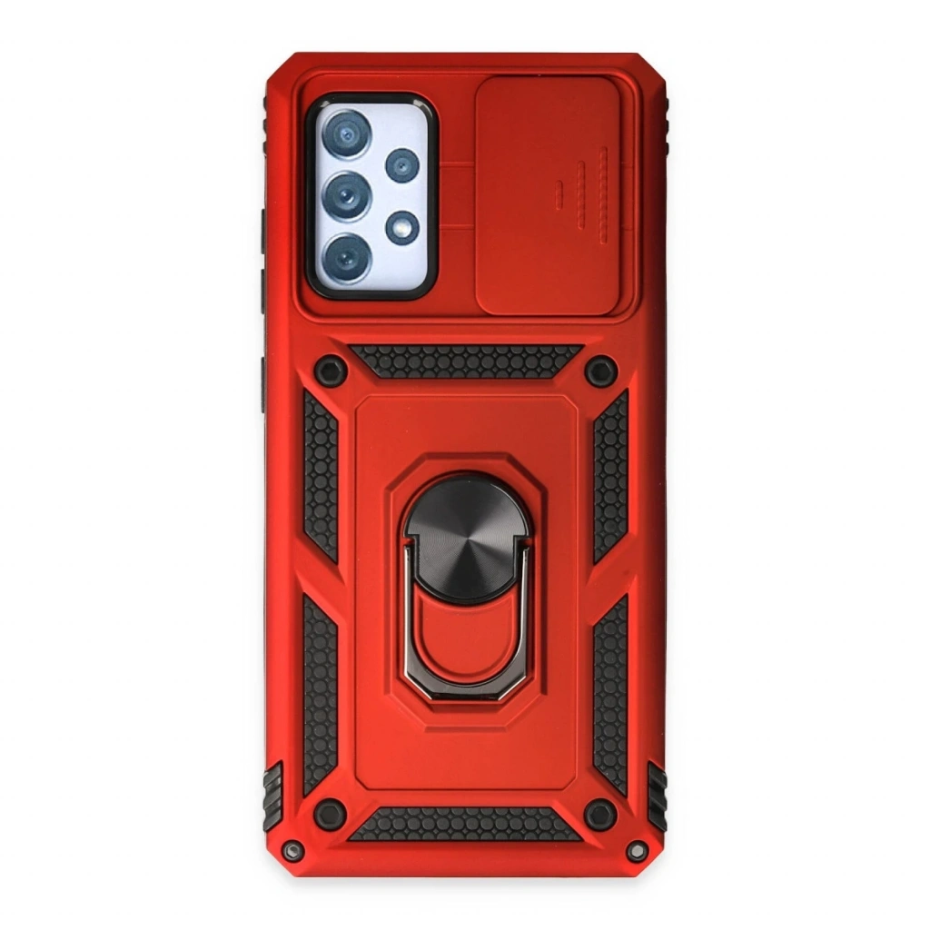 Samsung Galaxy A72 Kılıf Pars Lens Yüzüklü Silikon - Kırmızı