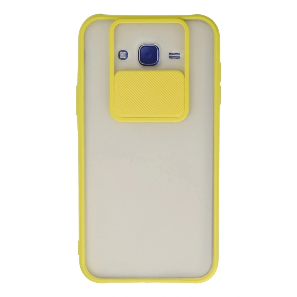 Samsung Galaxy J7 Kılıf Palm Buzlu Kamera Sürgülü Silikon - Sarı