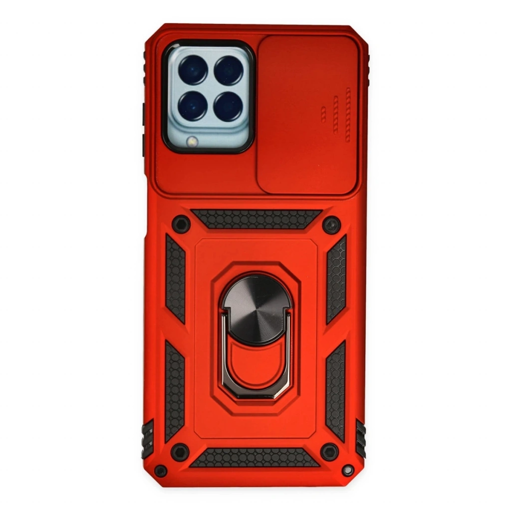 Samsung Galaxy M33 Kılıf Pars Lens Yüzüklü Silikon - Kırmızı