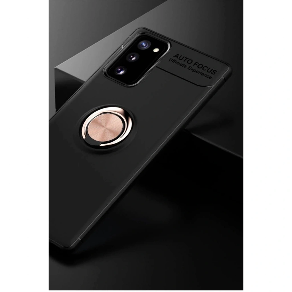 Samsung Galaxy Note 20 Kılıf Range Yüzüklü Silikon - Siyah-gold