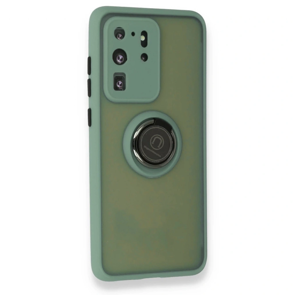 Samsung Galaxy S20 Ultra Kılıf Montreal Yüzüklü Silikon Kapak - Yeşil