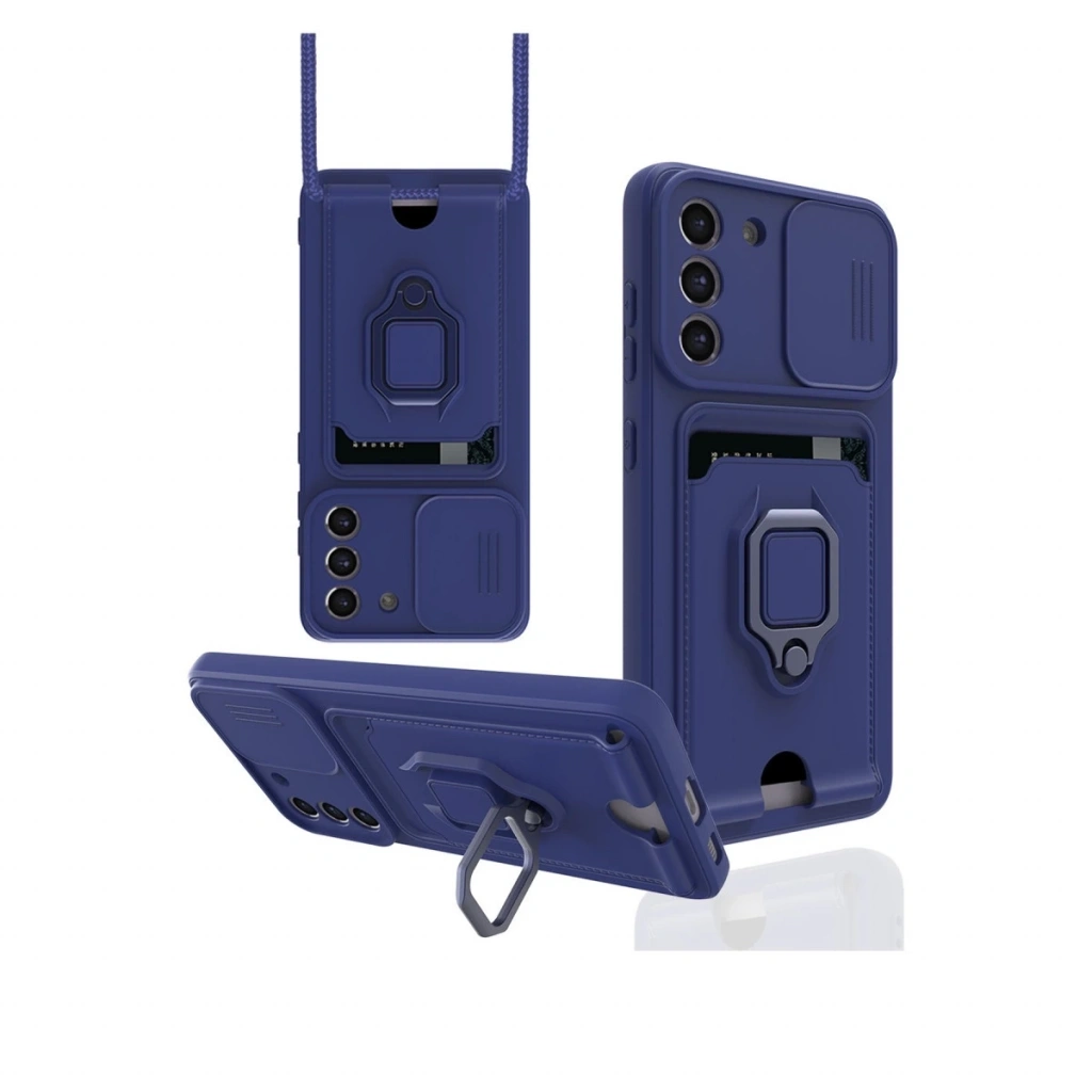 Samsung Galaxy S21 Fe Kılıf Zuma Kartvizitli Yüzüklü Silikon - Lacivert