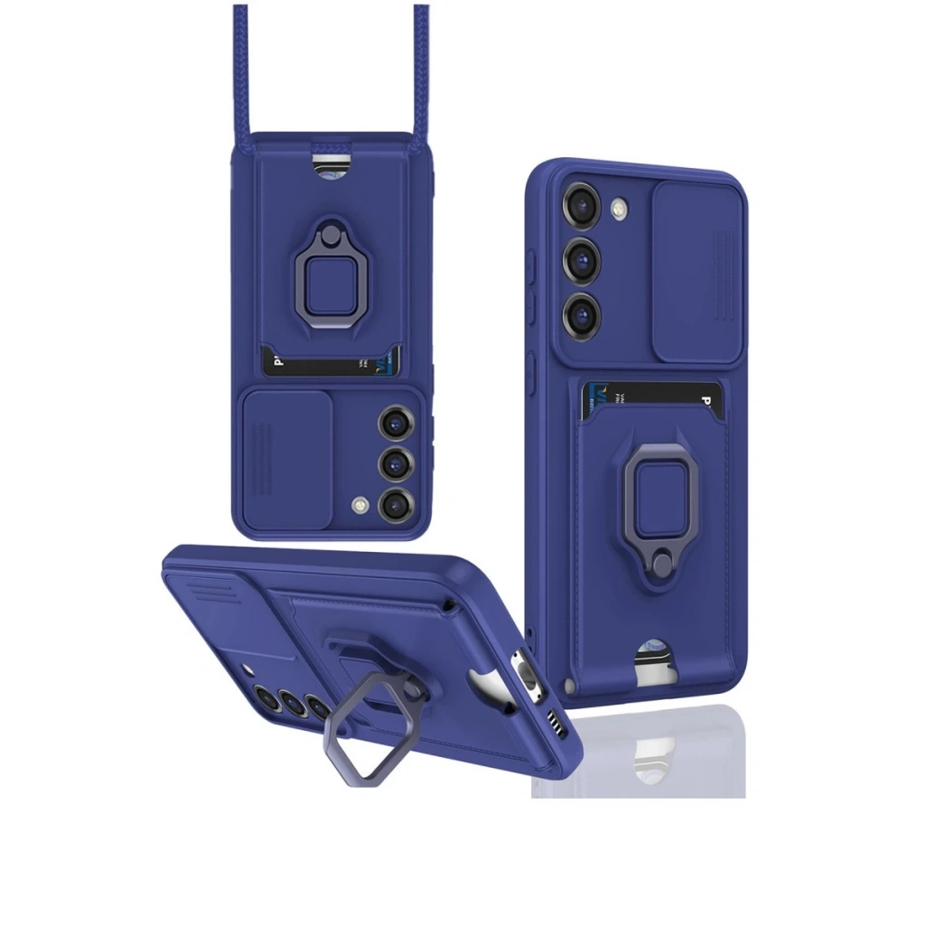 Samsung Galaxy S23 Plus Kılıf Zuma Kartvizitli Yüzüklü Silikon - Lacivert