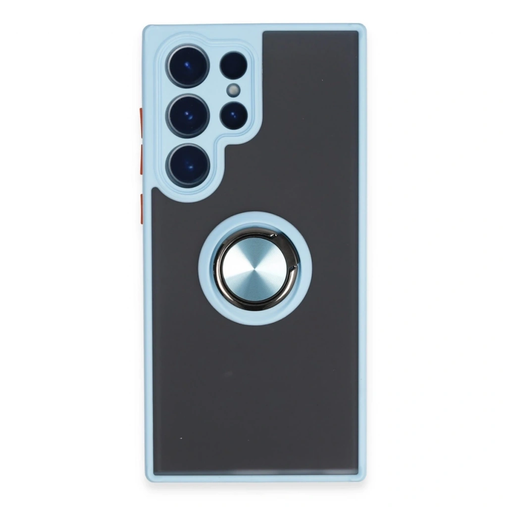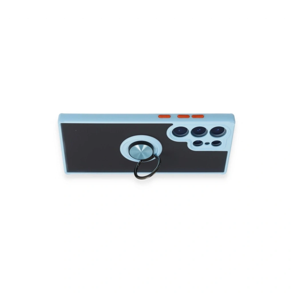 Samsung Galaxy S23 Ultra Kılıf Montreal Yüzüklü Silikon Kapak - Buz Mavi