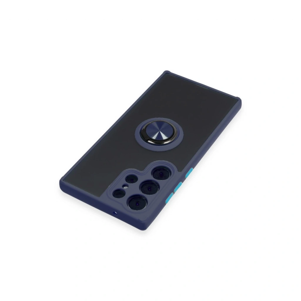 Samsung Galaxy S23 Ultra Kılıf Montreal Yüzüklü Silikon Kapak - Lacivert