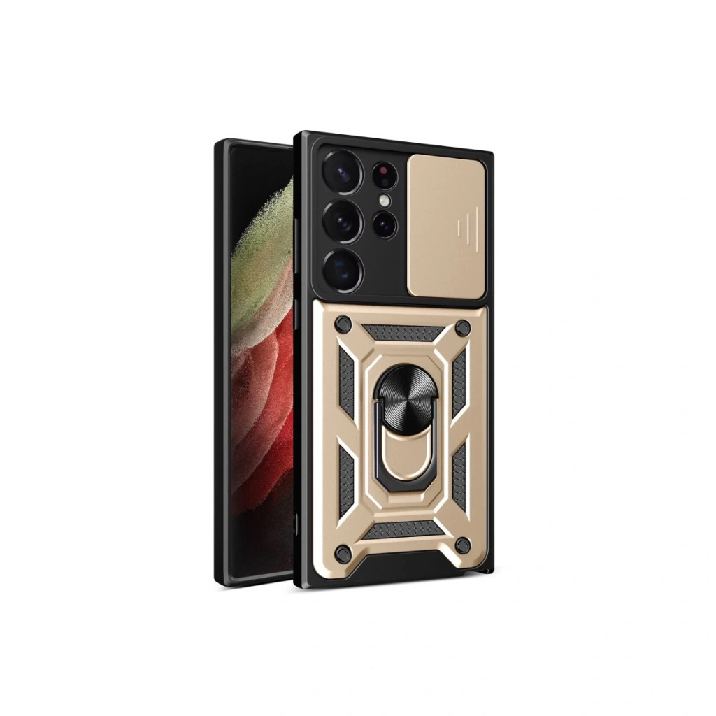 Samsung Galaxy S23 Ultra Kılıf Pars Lens Yüzüklü Silikon - Gold