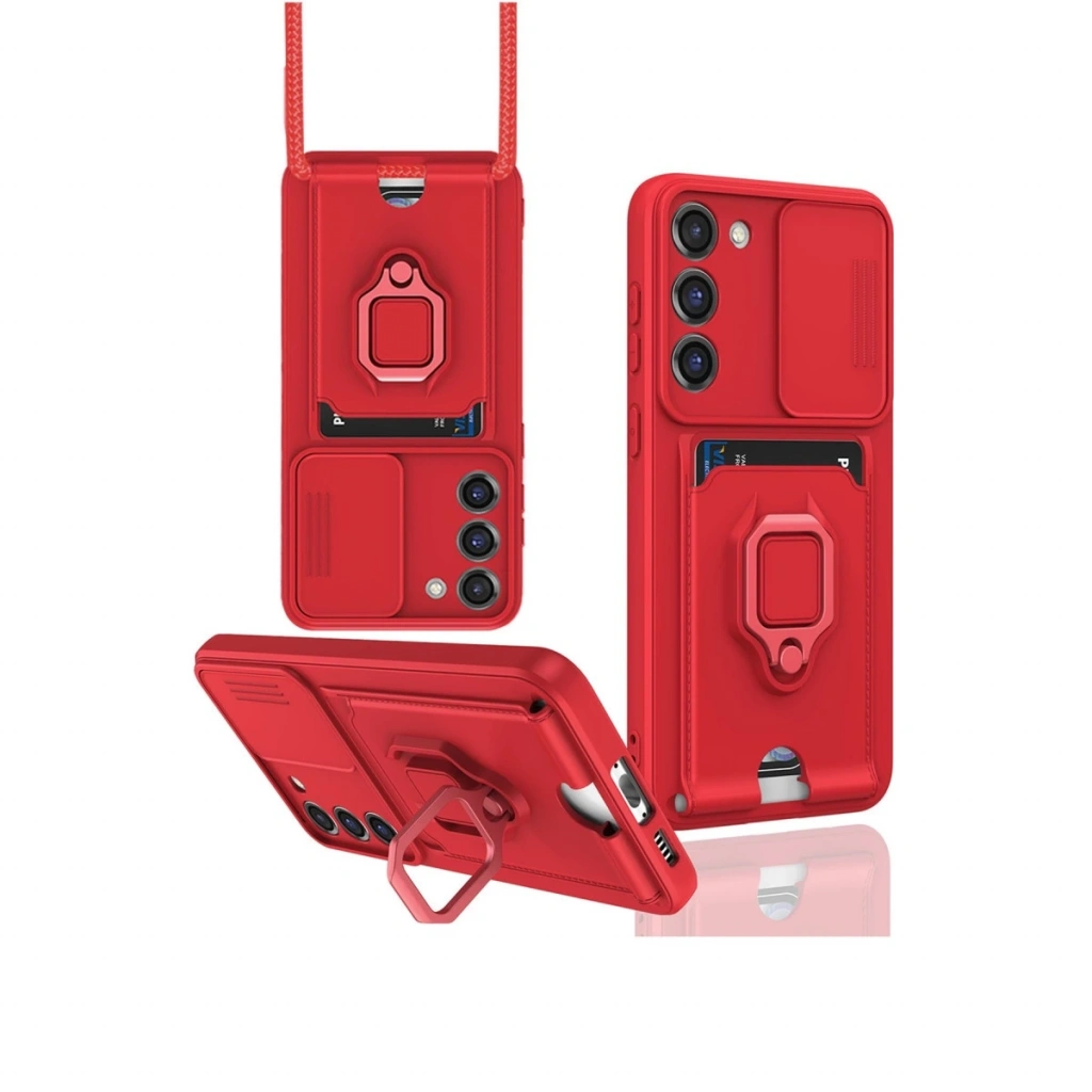 Samsung Galaxy S24 Plus Kılıf Zuma Kartvizitli Yüzüklü Silikon - Kırmızı