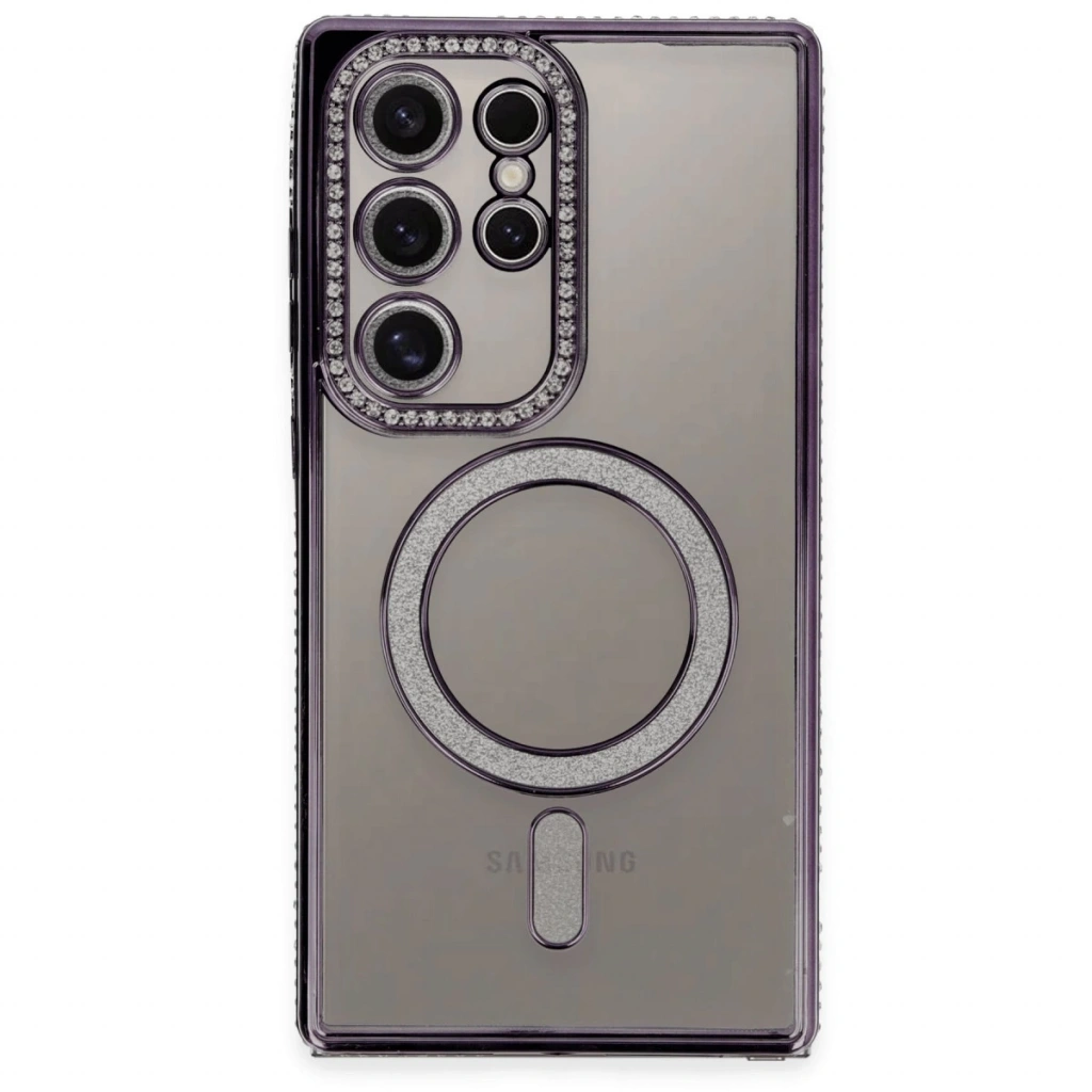 Samsung Galaxy S24 Ultra Kılıf Joke Simli Magneticsafe Kılıf - Derin Mor