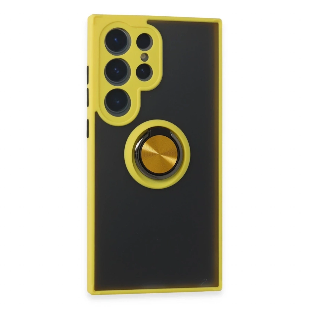 Samsung Galaxy S24 Ultra Kılıf Montreal Yüzüklü Silikon Kapak - Sarı