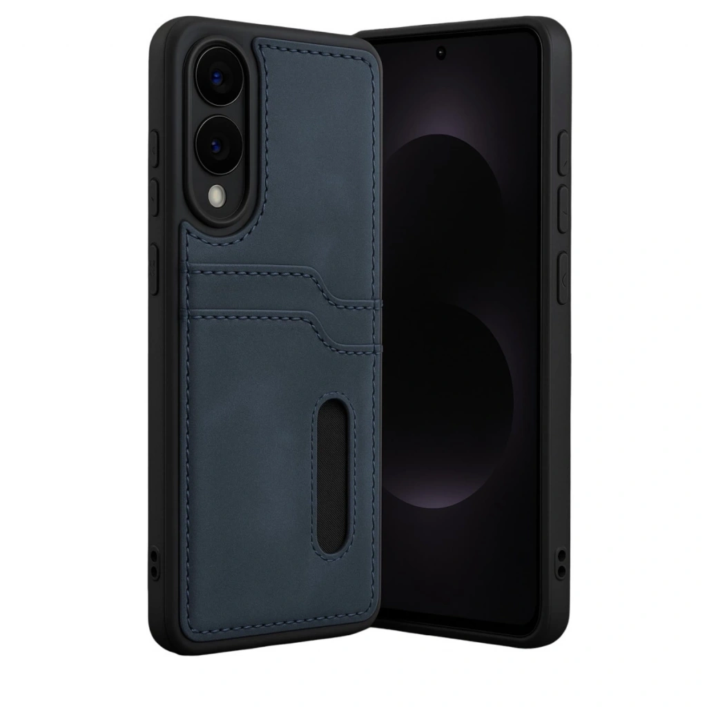 Samsung Galaxy S25 Edge Sara Kartvizitli Deri Kılıf - Lacivert