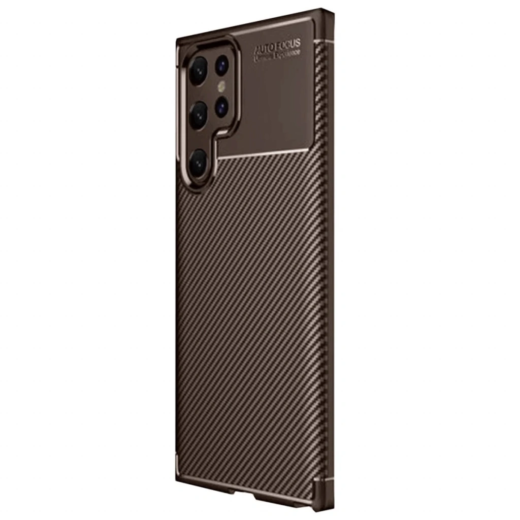 Samsung Galaxy S25 Ultra Kılıf Auto Focus Karbon Kapak - Kahverengi