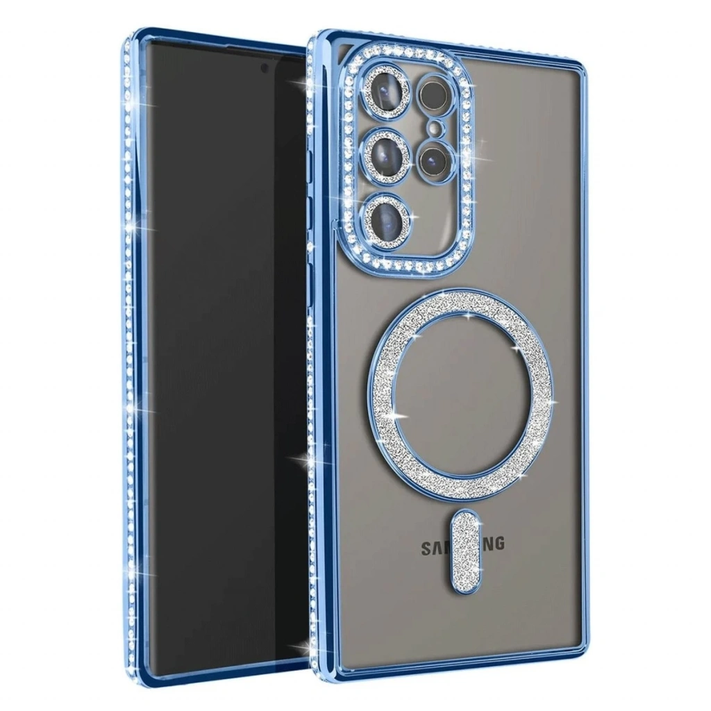 Samsung Galaxy S25 Ultra Kılıf Joke Simli Magneticsafe Kılıf - Mavi