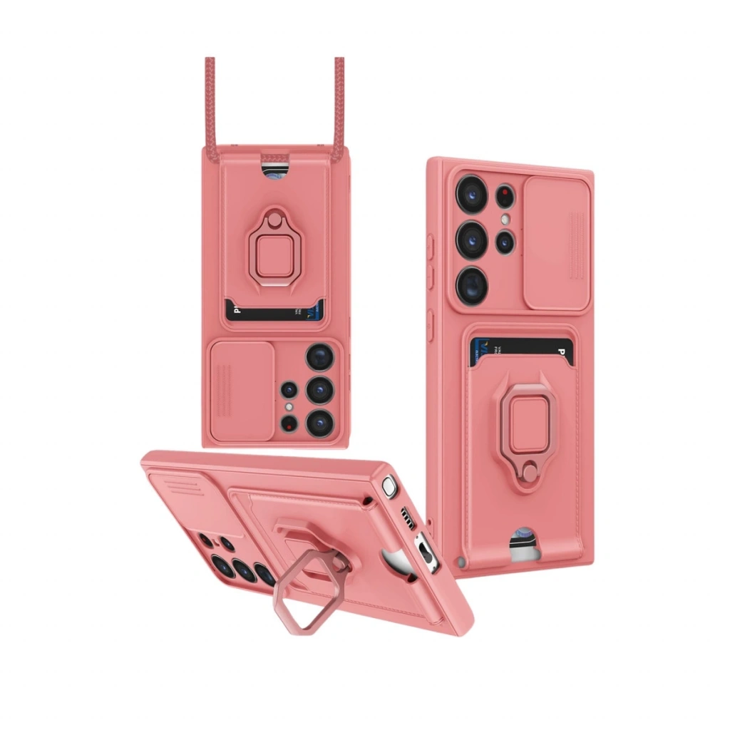 Samsung Galaxy S25 Ultra Kılıf Zuma Kartvizitli Yüzüklü Silikon - Pembe