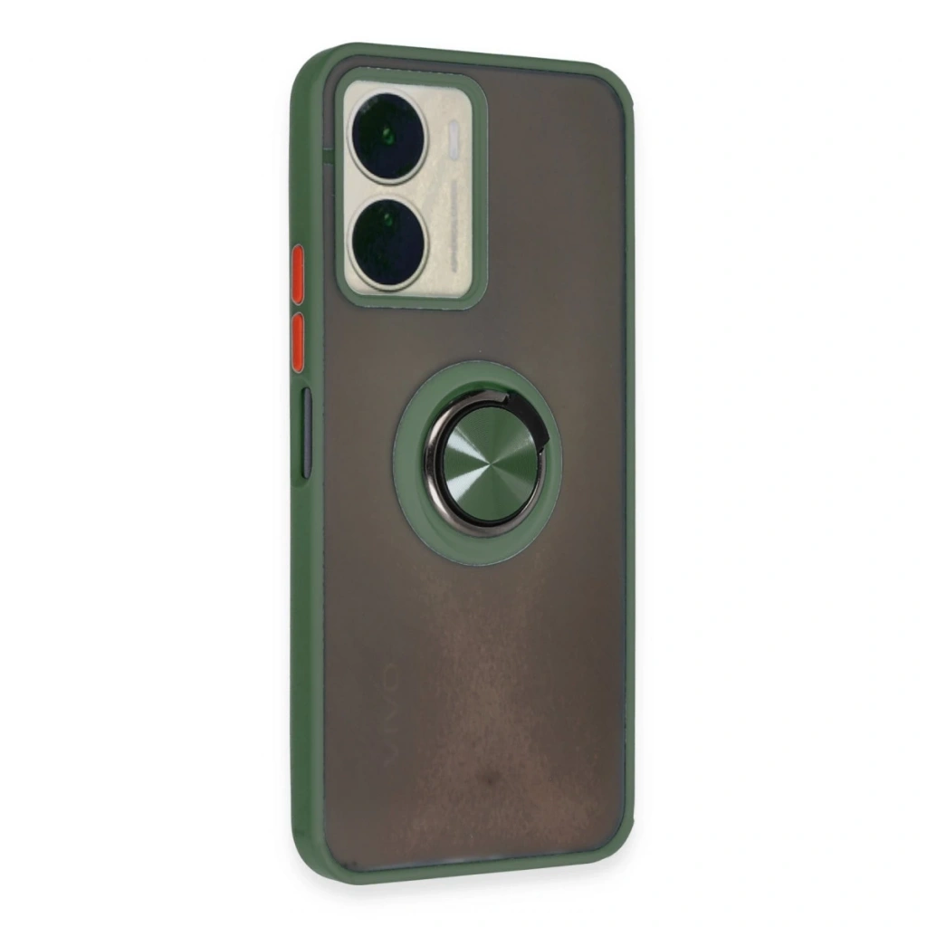 Vivo Y16 Kılıf Montreal Yüzüklü Silikon Kapak - Yeşil