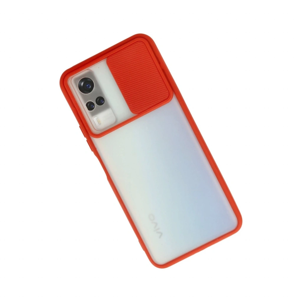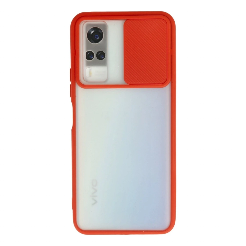 Vivo Y53s Kılıf Palm Buzlu Kamera Sürgülü Silikon - Kırmızı