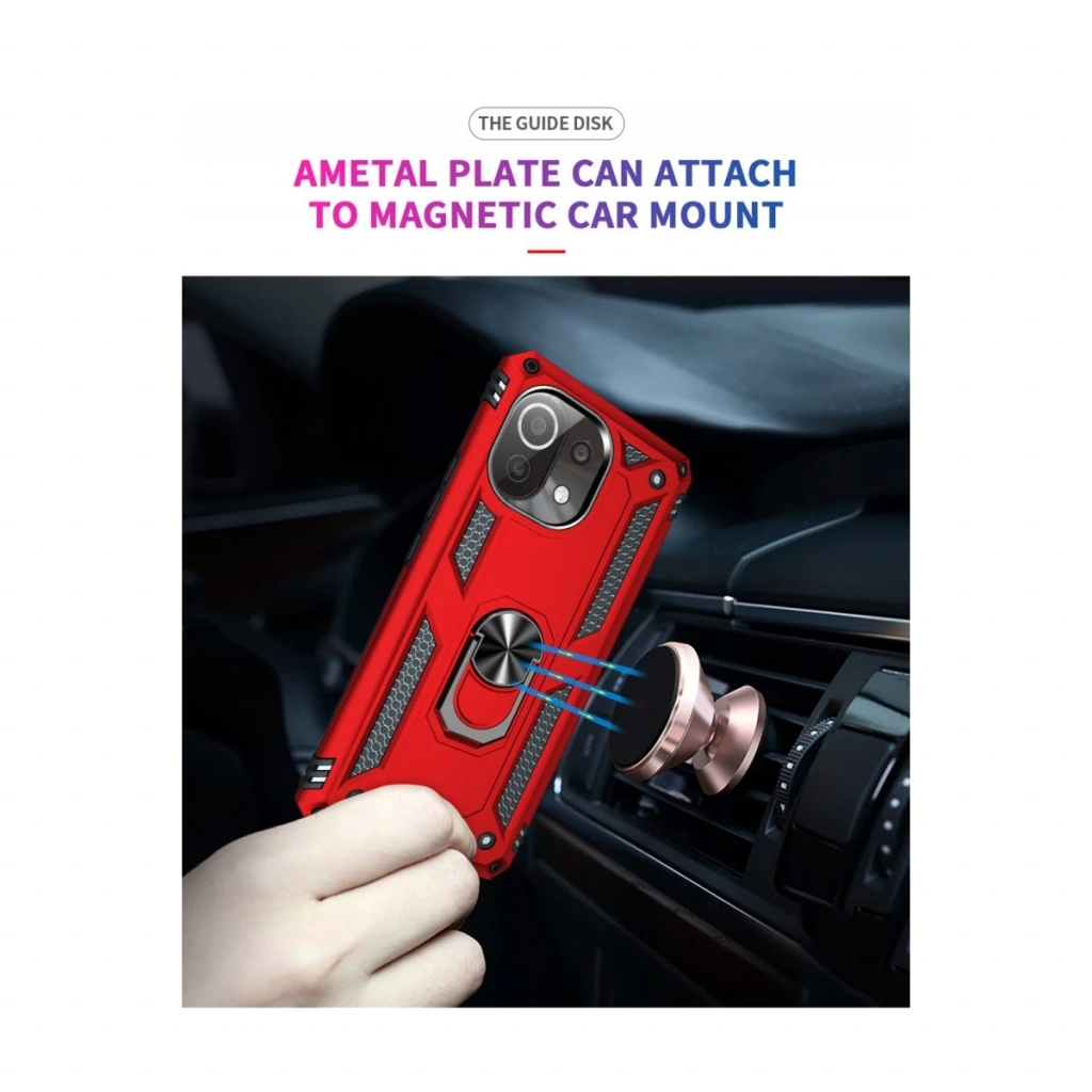 Xiaomi Mi 11 Lite Kılıf Sofya Yüzüklü Silikon Kapak - Kırmızı