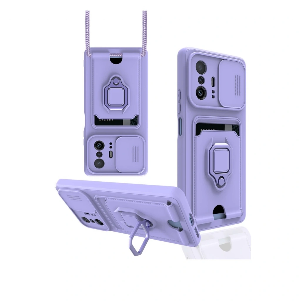 Xiaomi Mi 11t Pro Kılıf Zuma Kartvizitli Yüzüklü Silikon - Lila
