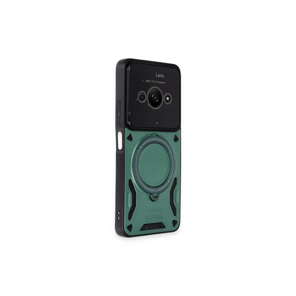 Xiaomi Poco C61 Kılıf Joy Lens Standlı Kapak - Koyu Yeşil