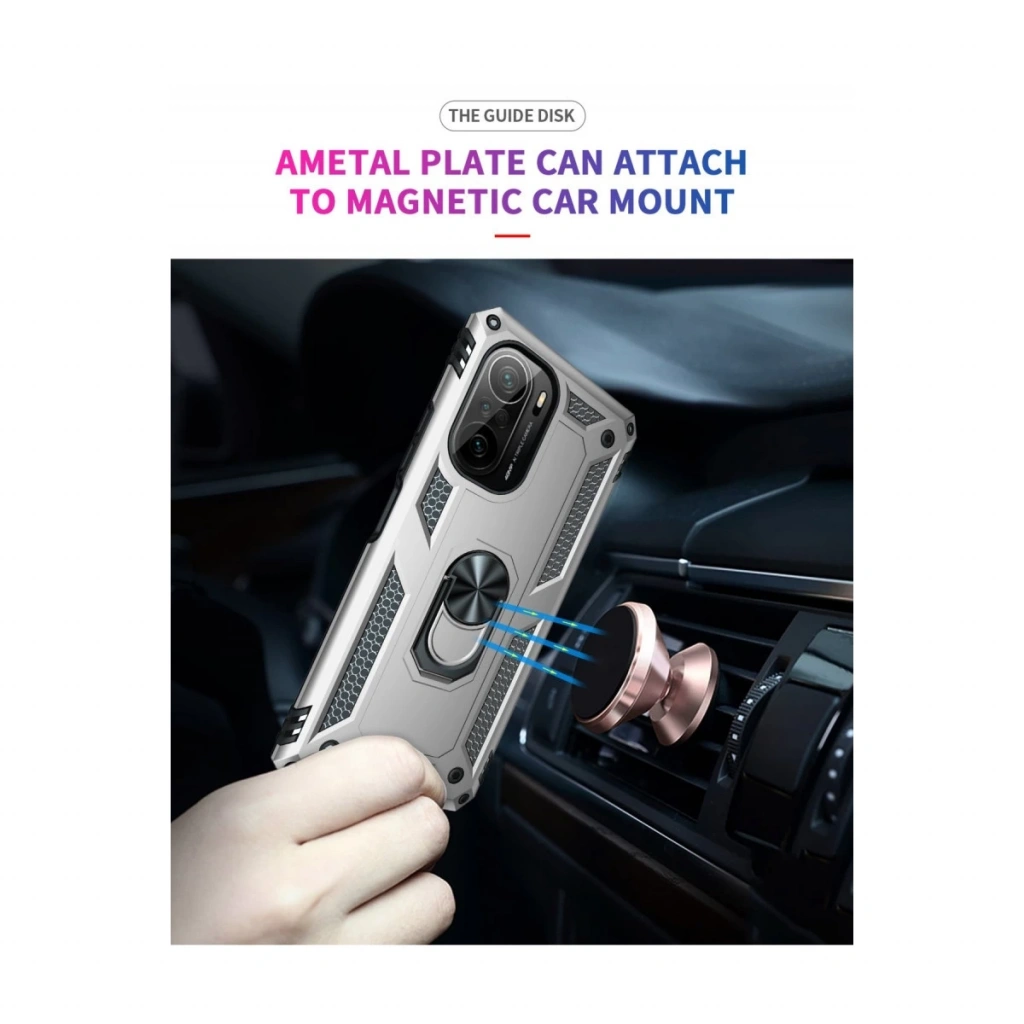 Xiaomi Poco F3 Kılıf Sofya Yüzüklü Silikon Kapak - Gümüş