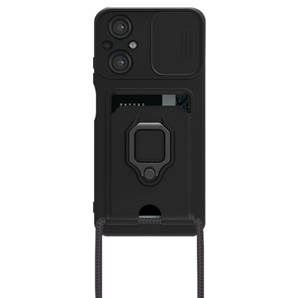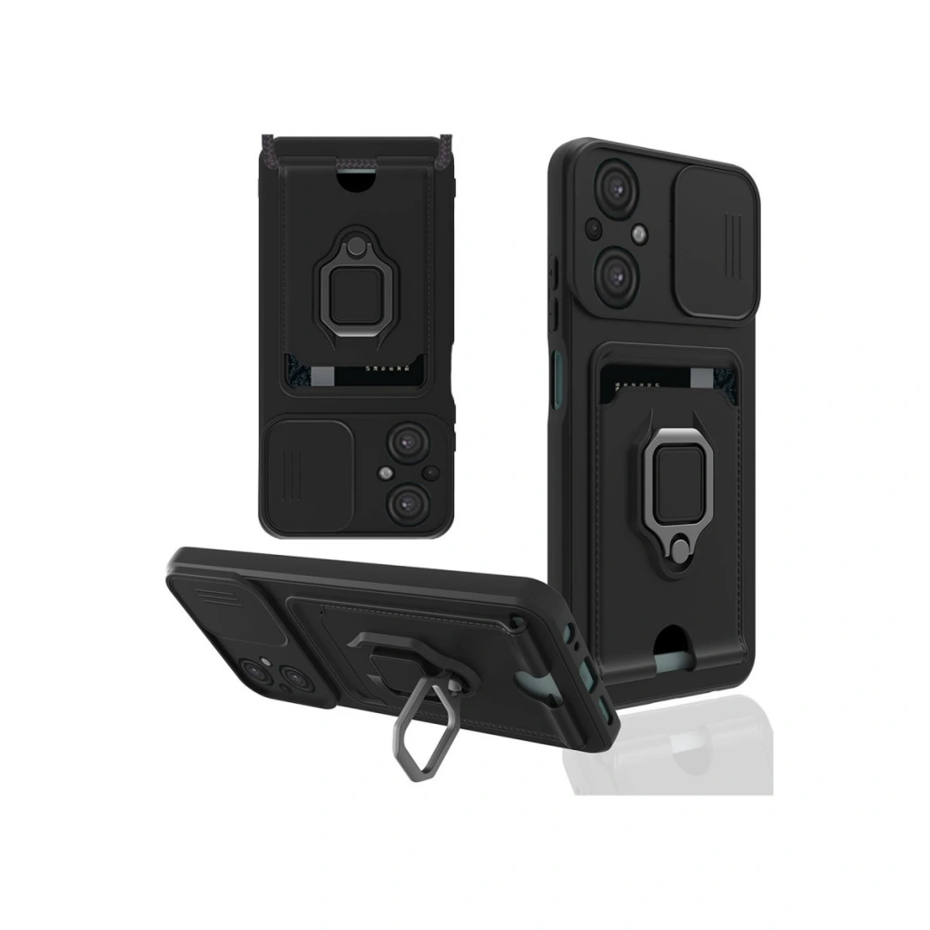 Xiaomi Poco M5 Kılıf Zuma Kartvizitli Yüzüklü Silikon - Siyah