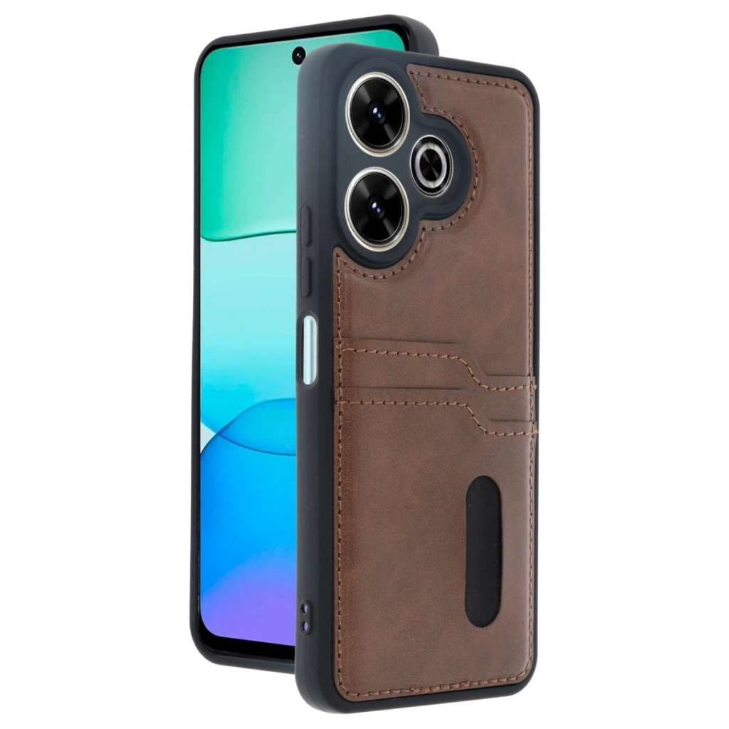 Xiaomi Redmi 13 4g Kılıf Sara Kartvizitli Deri Kılıf - Taba