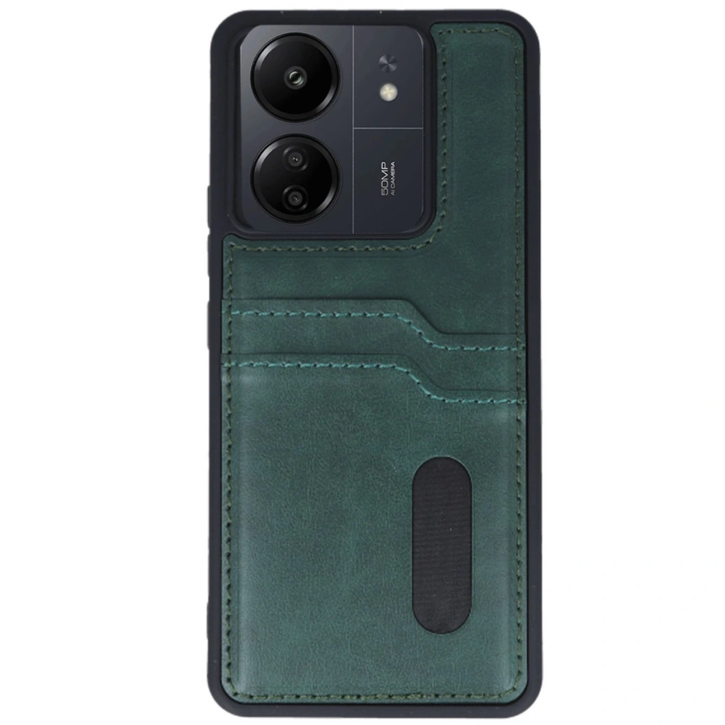 Xiaomi Redmi 13c Kılıf Sara Kartvizitli Deri Kılıf - Koyu Yeşil
