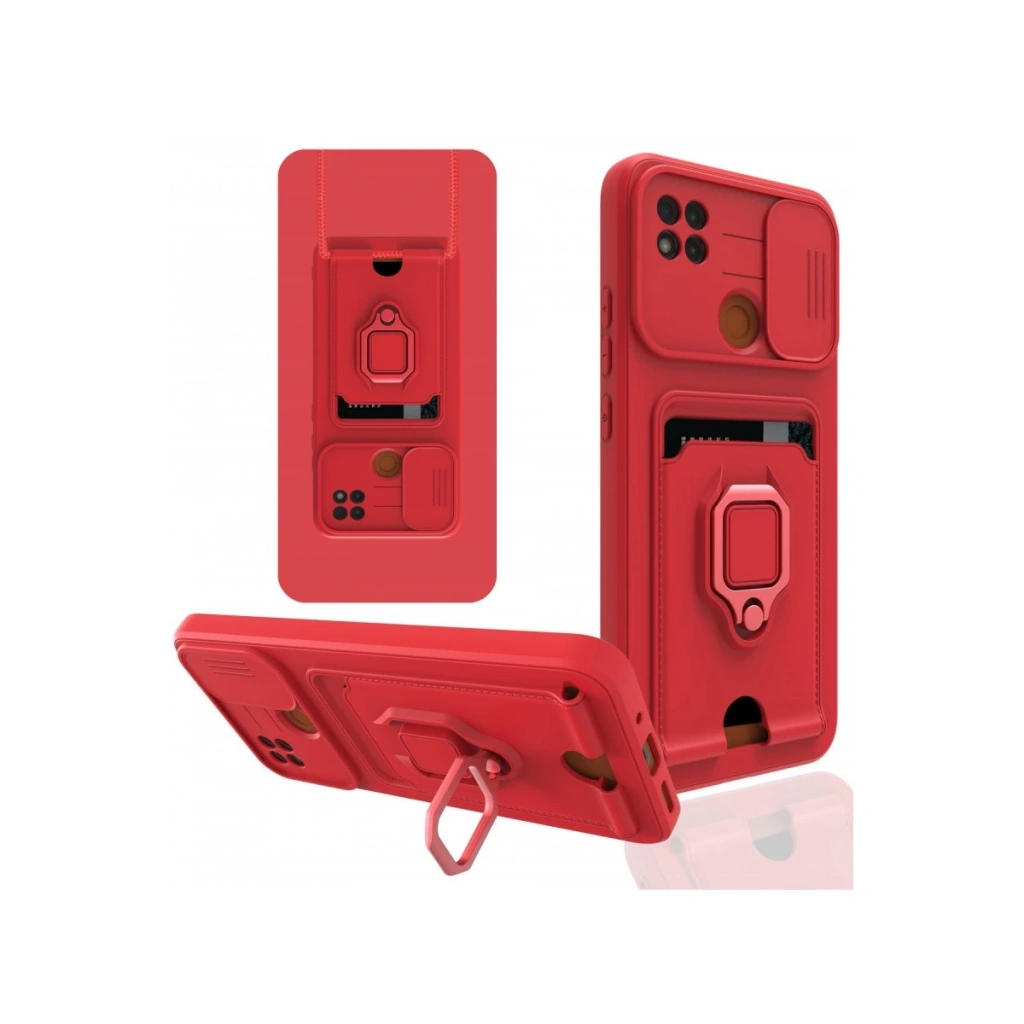 Xiaomi Redmi 9c Kılıf Zuma Kartvizitli Yüzüklü Silikon - Kırmızı