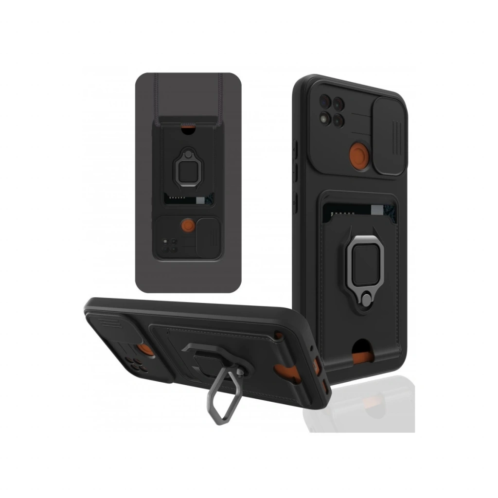 Xiaomi Redmi 9c Kılıf Zuma Kartvizitli Yüzüklü Silikon - Siyah