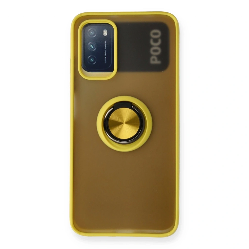 Xiaomi Redmi 9t Kılıf Montreal Yüzüklü Silikon Kapak - Sarı