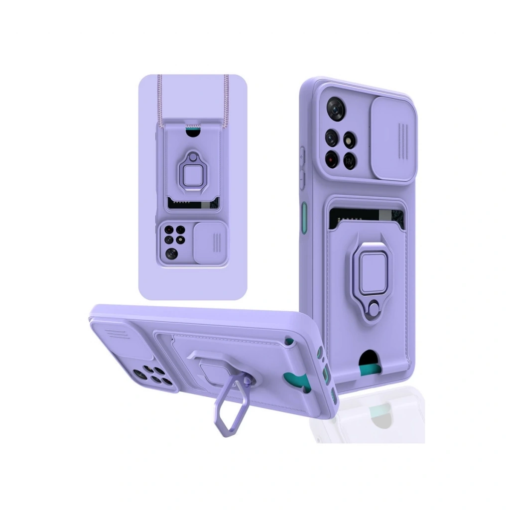 Xiaomi Redmi Note 11t Kılıf Zuma Kartvizitli Yüzüklü Silikon - Lila