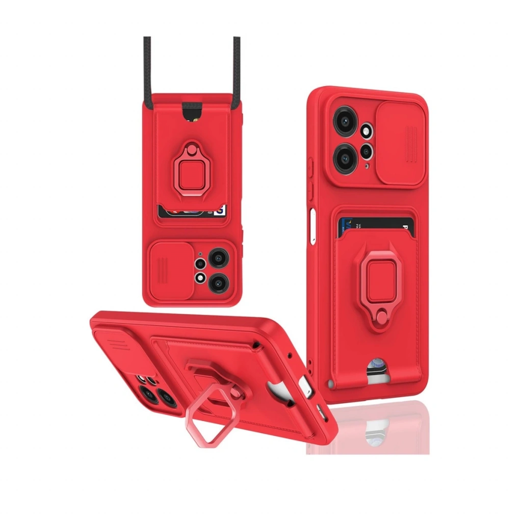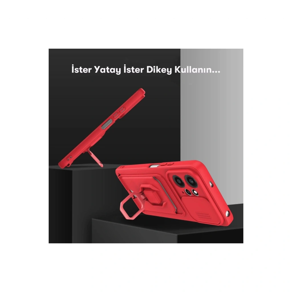 Xiaomi Redmi Note 12 4g Kılıf Zuma Kartvizitli Yüzüklü Silikon - Kırmızı