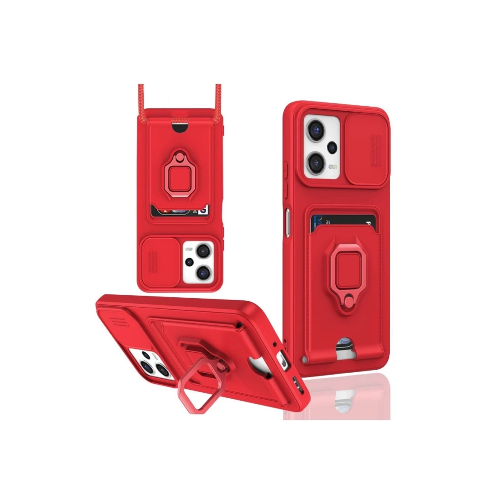 Xiaomi Redmi Note 12 Pro 5g Kılıf Zuma Kartvizitli Yüzüklü Silikon - Kırmızı