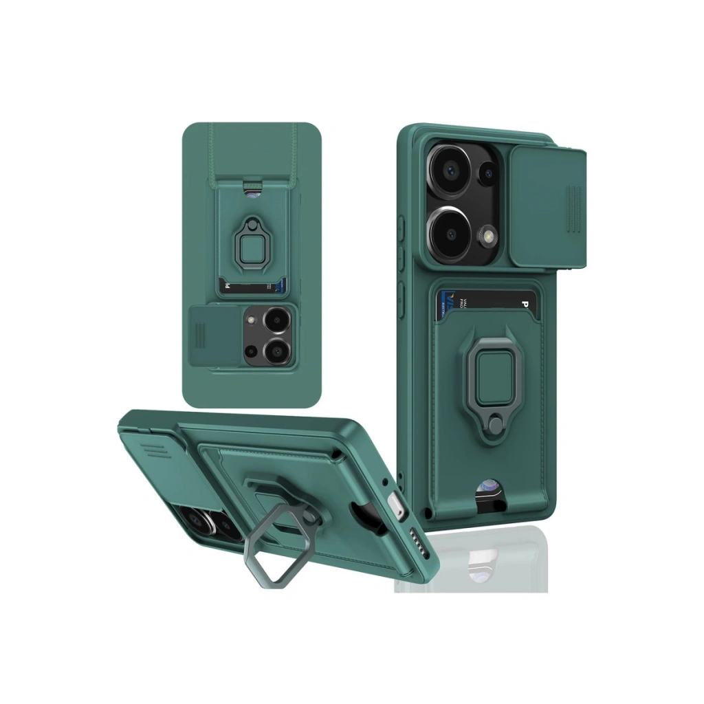 Xiaomi Redmi Note 13 Pro 4g Kılıf Zuma Kartvizitli Yüzüklü Silikon - Yeşil