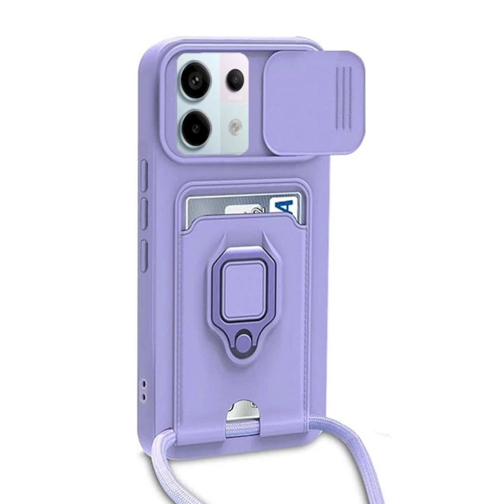 Xiaomi Redmi Note 13 Pro 5g Kılıf Zuma Kartvizitli Yüzüklü Silikon - Lila